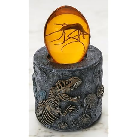 VEOJEIN Jurassic Dinosaur Fossil Jar with 3D Amber Mosquito Paperweight, Resin Tyrannosaurus Skeleton Container with Prehistoric Insect Display, Gift for Men, Collectors, Fossil, Park, Decor