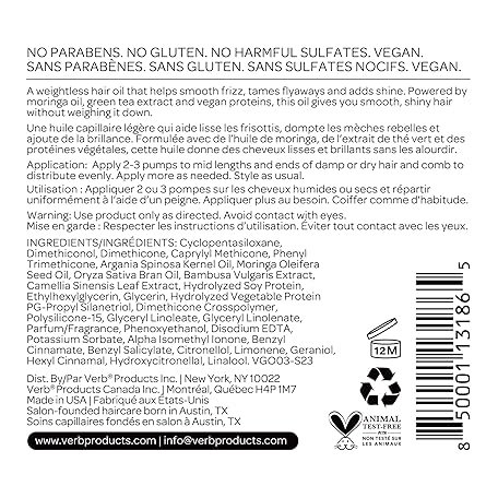 Thông tin sản phẩm VERB Ghost Oil - Weightless Hair Oil for Fine to Medium Hair - Smooths Frizz, Adds Shine - No Parabens, Gluten or Harmful Sulfates