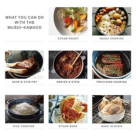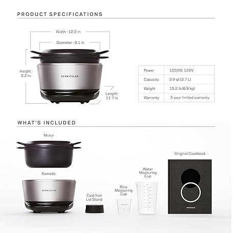 Vermicular Musui–Kamado (RICEPOT) | Cast Iron Induction Cooker | Precision Multicooker | Japanese Rice Cooker | Slow Cooker | Non-Toxic Enameled Cast Iron Pot | Charcoal | US Model (120V)
