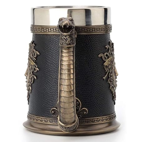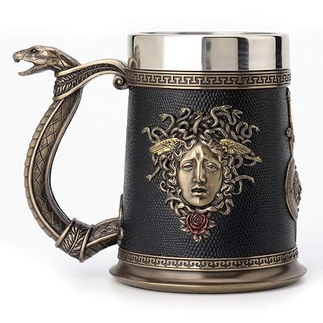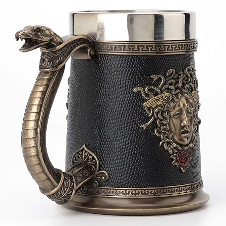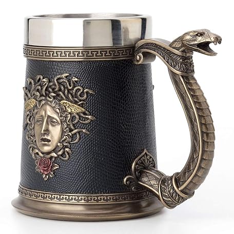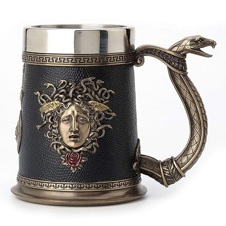 Veronese Design 5.75 Inch Greek Roman Goddess Medusa Beer Stein Large Stainless Steel Tumbler Antique Bronze Finish Sculpture Tabletop Decorative Cup