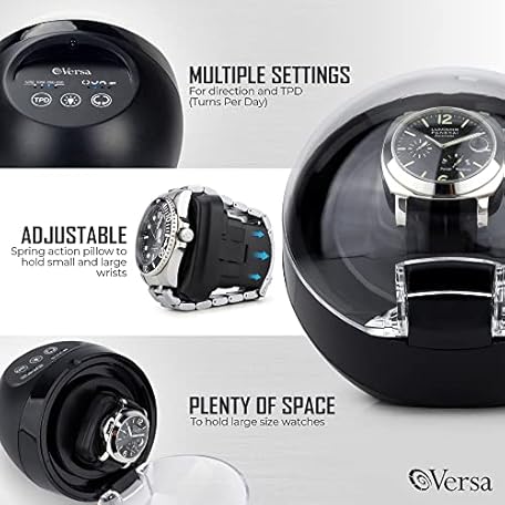 Thông tin sản phẩm Versa Watch Winder for Automatic Watches - Direct Drive Motor, Touch Button Settings, 12 Settings, Display Light, Adjustable Pillow, Compact Design - Single Watch Winder for Rolexes