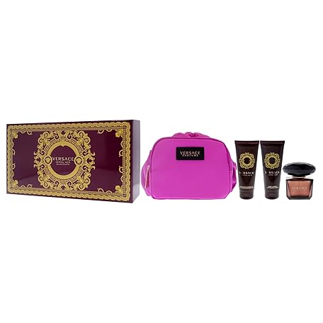 Thương hiệu Versace là cái tên nổi tiếng được rất nhiều khách hàng trên thế giới chọn lựa. Với kiểu dáng đẹp mắt, sang trọng, sản phẩm Versace Crystal Noir by Versace for Women 4 Piece Set Includes: 3.3 oz Eau de Toilette Spray + 3.4 oz Body Lotion + 3.4 oz Bath and Shower Gel + Travel Beauty Bag là sự lựa chọn hoàn hảo nếu bạn đang tìm mua một món cho riêng mình.