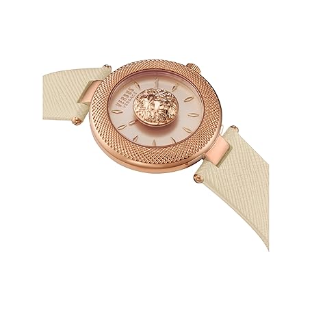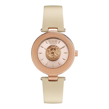 Versus Versace Brick Lane Lion Collection Luxury Womens Watch Timepieces with a Beige Strap Featuring a Rosegold Case and a Rosegold Dial