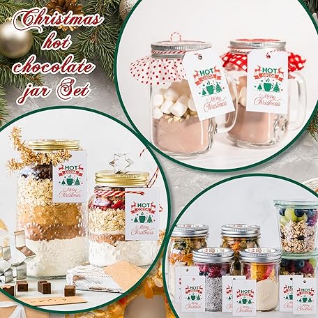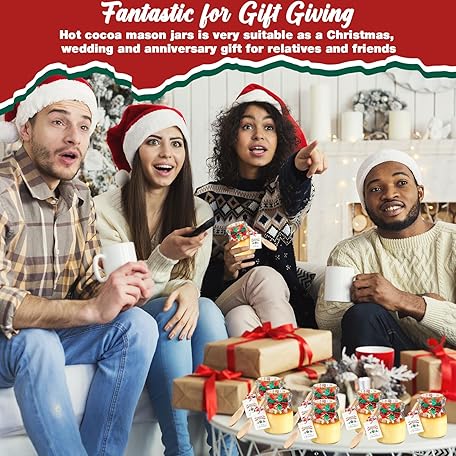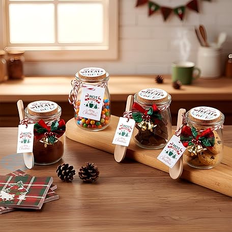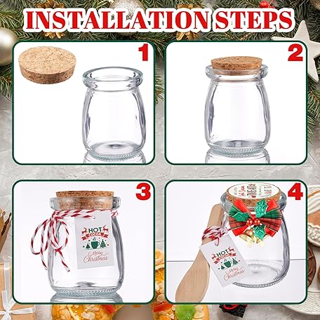 Thông tin sản phẩm Vesici 6 Pack Hot Cocoa Gift Set Glass with Mason Jars Cork Lids Screw Cap with Silver Wooden Spoons stickers cards for Food Storage Hot Cocoa DIY Christmas Winter Gifts Wedding(3.4 oz,Cork Lids)