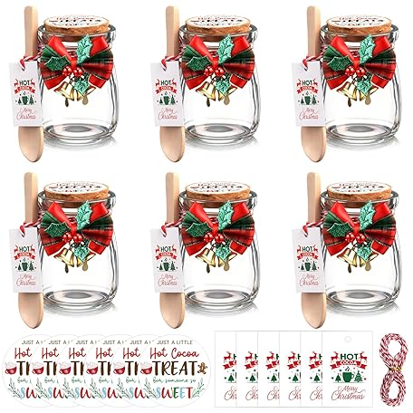 Sản phẩm Vesici 6 Pack Hot Cocoa Gift Set Glass with Mason Jars Cork Lids Screw Cap with Silver Wooden Spoons stickers cards for Food Storage Hot Cocoa DIY Christmas Winter Gifts Wedding(3.4 oz,Cork Lids) đang được bán với giá ưu đãi là $19.6091 tại nước Mỹ.