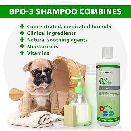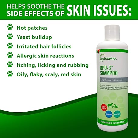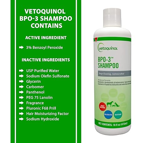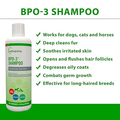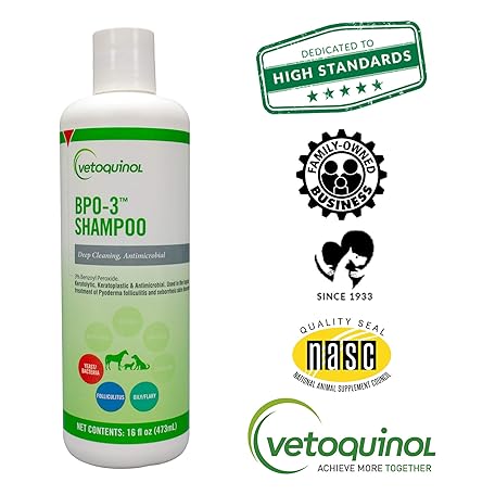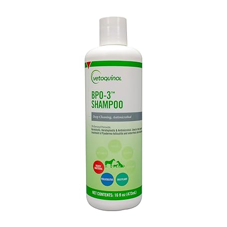 Thông tin sản phẩm Vetoquinol BPO-3 Shampoo for Dogs, Cats & Horses (3% Benzoyl Peroxide) – 16oz – Deep Cleaning, Medicated Shampoo Opens & Flushes Hair Follicles – Degreases Oily Coats – Soothes Red, Flaky, Itchy Skin
