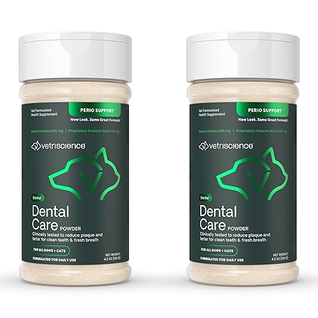 VETRISCIENCE Healthy Mouth Dog Dental Powder, 2Pack – Helps Reduce Plaque & Tartar Buildup, Support Clean Teeth & Fresh Breath, Vet-Formulated Oral Care Powder for Dogs Cats, NASC Certified, 2 x 4.2oz
