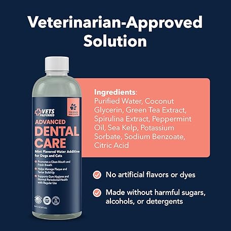 Thông tin sản phẩm Vets Preferred Oral Care Water Additive for Dogs - Healthy Mouth Dog Breath Freshener Mouthwash - Fights Bad Breath, Removes Plaque and Tartar - Prevents Gum Disease - Mild Mint Flavor