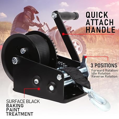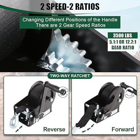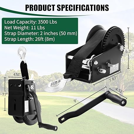 Thông tin sản phẩm Vevitts 3500lbs Hand Winch Boat Winch, Hand Crank Winch with 8m (26ft) Strap Manual Winches, Two-Way Two-Speed Adjustable Boat Trailer Winch, Corrosion Resistant Towing Winches