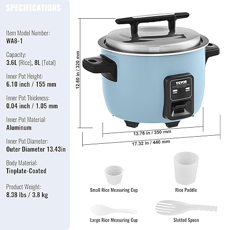 Thông tin sản phẩm VEVOR Commercial Rice Cooker, 40-Cup Rice Cooker, 8.45 Qt / 8 Liter Large Rice Cooker and Warmer with Nonstick Inner Pot, Fast Cooking and 24-Hour Keep Warm, with Rice Cup and Paddle, for Restaurant