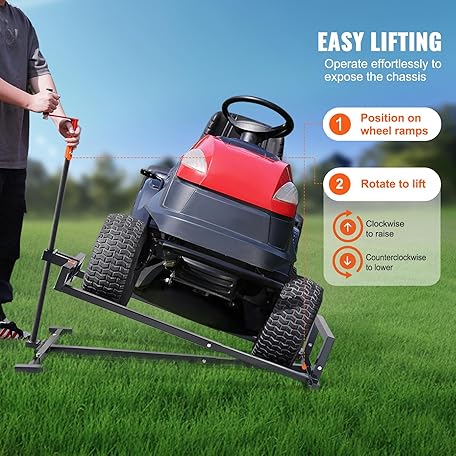 Thông tin sản phẩm VEVOR Ride on Lawn Mower Lift Jack, 880 Lbs Weight Capacity, Telescopic Maintenance Jack with Crank Handle & Power Tool Handle, Foldable Lawn Tractor Lifter for Lawn Mowers and Garden Tractors, Black