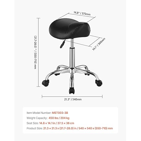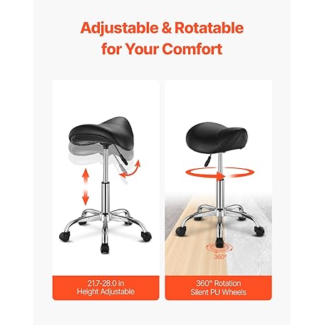 • VEVOR Saddle Stool with Wheels, 450 LBS Weight Capacity Ergonomic Rolling Stool, Height Adjustable Thickened PU Leather Swivel Saddle Chair for Salon, Spa, Massage, Tattoo, Clinic, Black