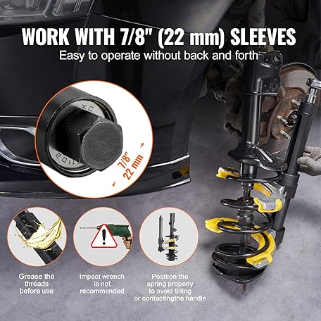 Thông tin sản phẩm VEVOR Strut Spring Compressor Set, Macpherson Strut Spring Compressor Kit, Interchangeable Fork Strut Coil Extractor Remover Tool, with Yellow Protective Sleeve and Carrying Case