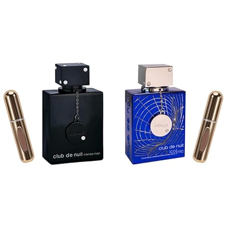 Viaan Krishna Men's Fragrance Bundle Club De Nuit INTENSE & ICONIC - Gift Set 3.6oz Spicy & Woody Scent (2 Pack), Plus 2 Refillable 5ml Travel Spray