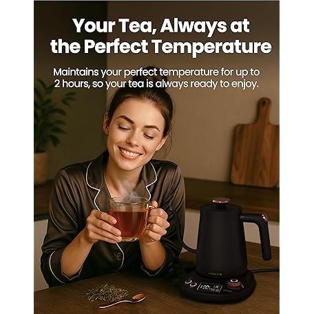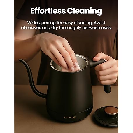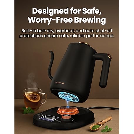 Vianté Electric Gooseneck Kettle with Precise Temperature Control. Pour Over Coffee & Tea Kettle. Boil-Dry Protection & Keep Warm Function. Stainless Steel, BPA-Free. Includes V60#2 Filters. 0.8L
