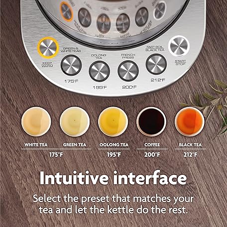 Sản phẩm Vianté Electric Kettle With Infuser For Loose Leaf. Hot Tea Maker With Temperature Control And Automatic Shut Off. Tea Kettle With Brewing Programs. 1.5 Liters Capacity đang được bán với giá ưu đãi là $108.9891 tại nước Mỹ.
