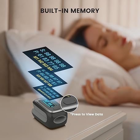 • Vibeat Fingertip Pulse Oximeter, Blood Oxygen Saturation Monitor, Finger O2 Sensor with Pulse Rate, Batteries and Lanyard Included, Black