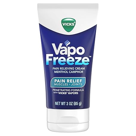 Vicks VapoFreeze Menthol Pain Relieving Cream 3oz, for Muscles & Joint Pain Associated with Arthritis, Simple Backaches, Strains, Sprains, Bruises, Vicks Vapors, Penetrating Formula