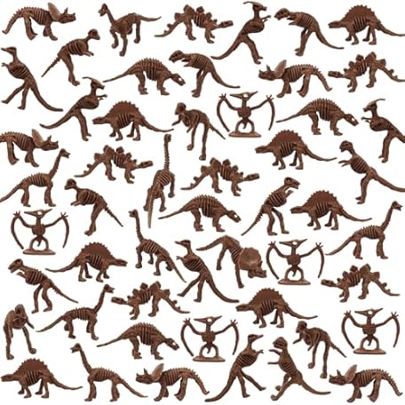 VICROIC 60 PCS Dinosaur Fossil Skeletons, Assorted Dinosaur Skeleton Toys Figures for Science Play Dino Sand Dig Party Favor Decorations(Brown)