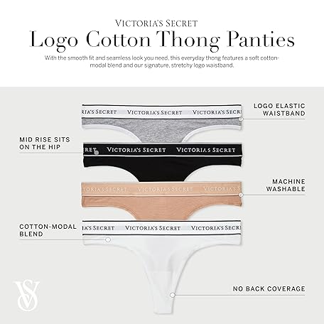 Thông tin sản phẩm Victoria's Secret Women's Cotton Logo Thong Underwear, Panties for Women, Multi Pack (XS-XXL)