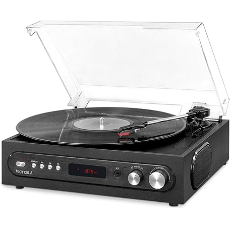 Thông tin sản phẩm Victrola 3-in-1 Turntable – 3-Speed (33 1/3, 45, 78 RPM) Bluetooth Record Player with FM Radio, & Built-In Stereo Speakers, 3.5 Aux In & RCA Output, Wireless Music Streaming, Dust Cover (Black)