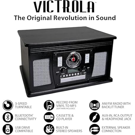 Thông tin sản phẩm Victrola Aviator 8-in-1 Bluetooth Record Player & Multimedia Center with Built-in Stereo Speakers - 3-Speed Turntable, Vinyl to MP3 Recording, Wireless Music Streaming, Mahogany