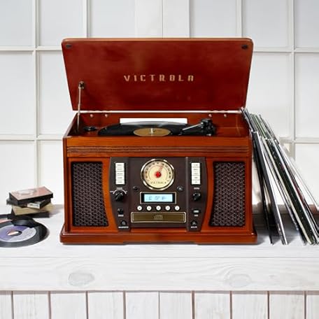 Thương hiệu Victrola là cái tên nổi tiếng được rất nhiều khách hàng trên thế giới chọn lựa. Với kiểu dáng đẹp mắt, sang trọng, sản phẩm Victrola Aviator 8-in-1 Bluetooth Record Player & Multimedia Center with Built-in Stereo Speakers - 3-Speed Turntable, Vinyl to MP3 Recording, Wireless Music Streaming, Mahogany là sự lựa chọn hoàn hảo nếu bạn đang tìm mua một món cho riêng mình.