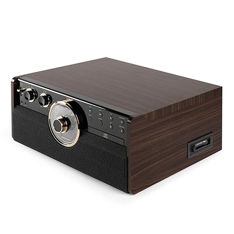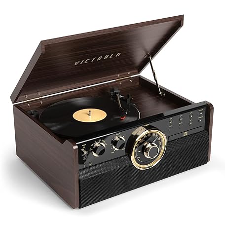 • Victrola Empire Signature 7-in-1 Wood Mid Century Modern Bluetooth Record Player