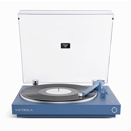 Victrola Fully Automatic Bluetooth Turntable w Audio Technica ATN3600L Cartridge, Automatic Repeat Function, 2-Speed Vinyl Record Player, Wireless Bluetooth Streaming, Preamp & Aluminum Platter Blue