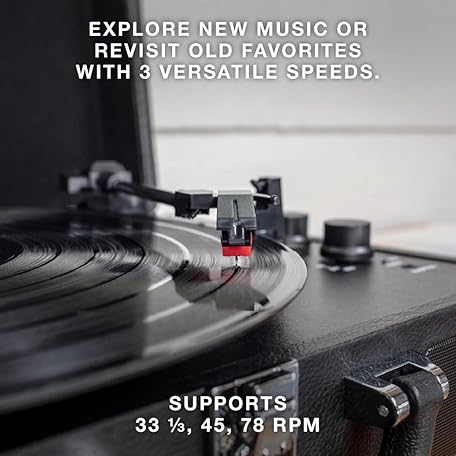 Thông tin sản phẩm Victrola Journey Bluetooth Portable Suitcase Record Player – with Built-in Speakers, 3 Speed Vinyl Record Player, RCA Out, Headphone Jack (Black)