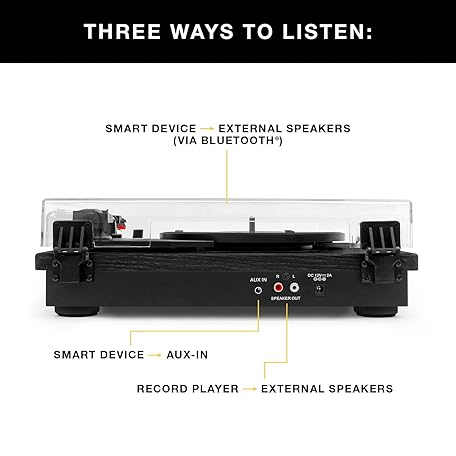 Victrola Montauk Vinyl Record Player, 3-Speed Belt Driven Turntable with Stereo Bluetooth Speaker Pair, RCA Output and 3.5mm Headphone Jack, Removable Dust Cover, Natural Wood Finish
