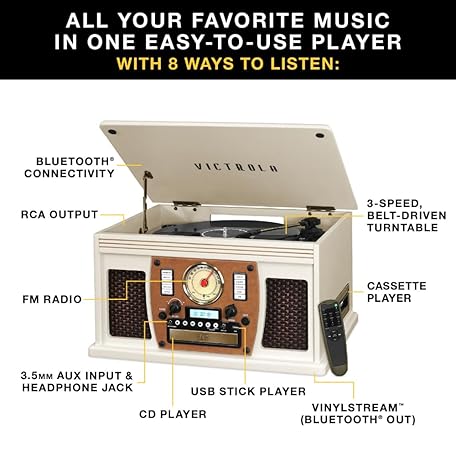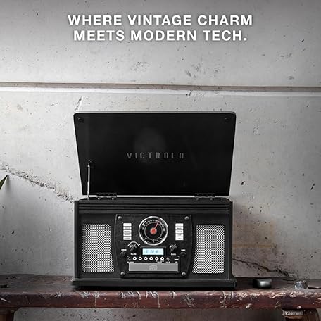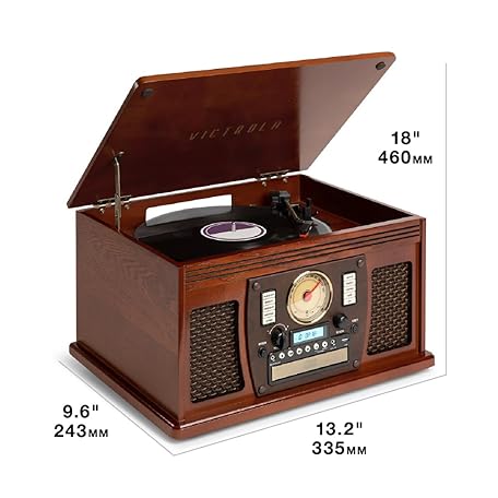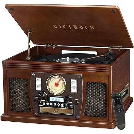 Thông tin sản phẩm Victrola Navigator 8-in-1 Bluetooth Record Player with Built-in Speakers– 3 Speed Turntable, CD Player, Cassette, FM Radio, USB, RCA Out, Headphone Jack, Wireless Music Streaming, Real Wood (Espresso)