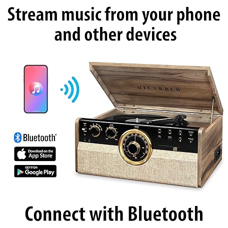 Victrola VTA-270B-FNT Empire Bluetooth 6 in 1 Music Center (33/45/78) (Farmhouse Walnut) and Victrola 3 Pack Turntable Replacement Needles