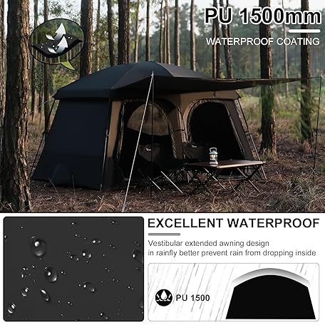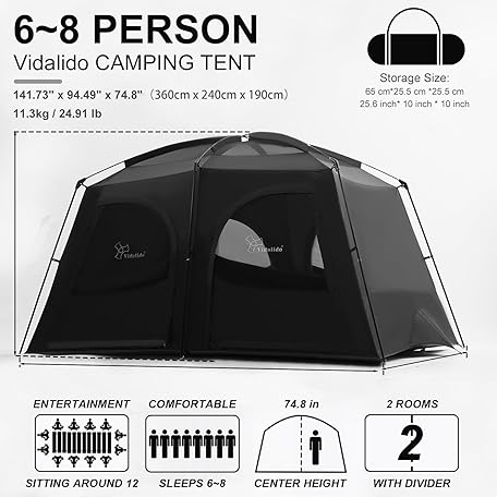 Vidalido Tents,6-8 Person Camping Tent with Extended Vestibule,2 Room Weather Resistant Family Tents,Easy Install Waterproof Outdoor Tent for Backpacking and Camping Hiking