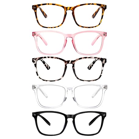 VIDEBLA 5 Pack Blue Light Blocking Reading Glasses,Spring Hinge Readers for Women Men,Anti UV Ray Filter Nerd Eyeglasses