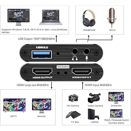 Video Capture Card Nintendo Switch, 4K HDMI Video Capture Card, 1080P 60FPS, HDMI to USB 3.0 Capture Card for Streaming Work with Camera/Xbox/PS4/PS5/PC/OBS
