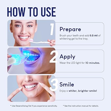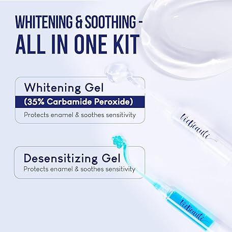 VieBeauti Teeth Whitening Kit with LED Light for Sensitive Teeth, 35% Carbamide Peroxide, Remineralizing Gel for Fast Results Mint