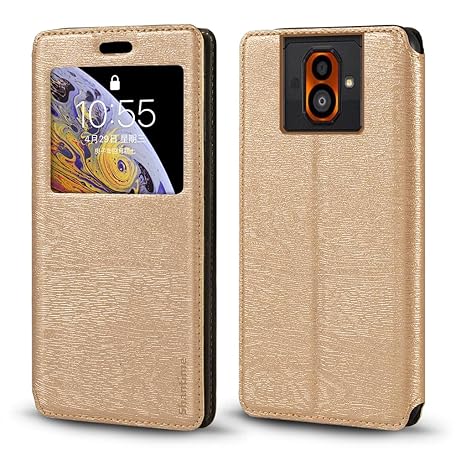 Viewable Window Leather Flip Case Compatible with Kyocera Torque G04 KYV46, Elegant Design Clear Display Invisible Magnetic Cover and Card Slot(Gold)