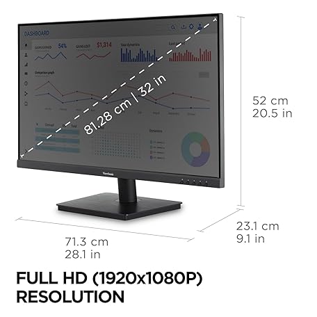 Thông tin sản phẩm ViewSonic VA3209M 32 Inch IPS Full HD 1080p Monitor with Thin Bezels, 75Hz, Eye Care, HDMI, VGA Inputs for Home and Office