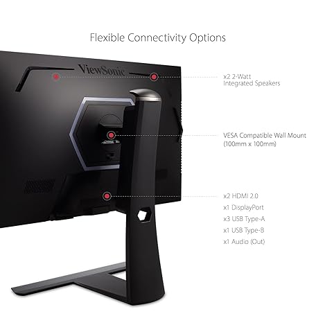 Thông tin sản phẩm ViewSonic XG251G 25 Inch 1080p 1ms 360Hz IPS Gaming Monitor with GSYNC, HDR400, RGB Lighting, NVIDIA Reflex, and Advanced Ergonomics for Esports