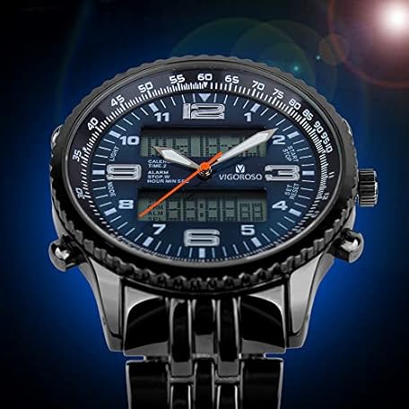 Thương hiệu VIGOROSO là cái tên nổi tiếng được rất nhiều khách hàng trên thế giới chọn lựa. Với kiểu dáng đẹp mắt, sang trọng, sản phẩm VIGOROSO Men's LED Analog Digital Watch Men Date Week Sports All Black Steel Mens Watch for Men là sự lựa chọn hoàn hảo nếu bạn đang tìm mua một món cho riêng mình.