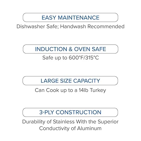 Thông tin sản phẩm Viking 3-Ply Oval Roasting Pan, 8.5 Quart, Stainless Steel Kitchen Cookware with Metal Induction Lid and Rack, Great for Turkey, Dishwasher and Oven Safe, Silver