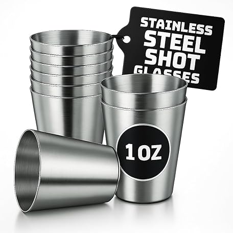 Sản phẩm VIKROM 15 Pcs Stainless Steel Shot Glasses - 30ml (1oz) Tiny Metal Shot Glasses, Lightweight and Easy to Store, Durable Metal Shots for Parties, Easy to Clean, Good for Hiking, Travels, and Picnics đang được bán với giá ưu đãi là $8.7091 tại nước Mỹ.
