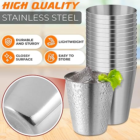 Thông tin sản phẩm VIKROM 15 Pcs Stainless Steel Shot Glasses - 30ml (1oz) Tiny Metal Shot Glasses, Lightweight and Easy to Store, Durable Metal Shots for Parties, Easy to Clean, Good for Hiking, Travels, and Picnics