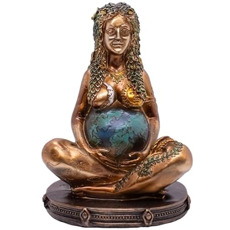VILLAGE GIFT IMPORTERS 8.5" Tall Resin Bronze-Tone Mother Gaia Statue | Greek Goddess of Earth | Spiritual Home Décor for Bookshelf, Table Top or Desk | Sun, Moon, Earth, and Nature Accents