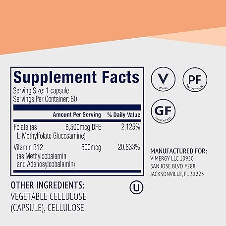 Sản phẩm Vimergy 5-MTHF Capsules – 60 Servings (1 Capsule/Serving) 8500mcg L-Methylfolate Glucosamine and 500 mcg Vitamin B12 Supplement –Bioavailable Folate Supplement for Women and Men Vegan 5 mthf (60 ct) đang được bán với giá ưu đãi là $55.59 tại nước Mỹ.