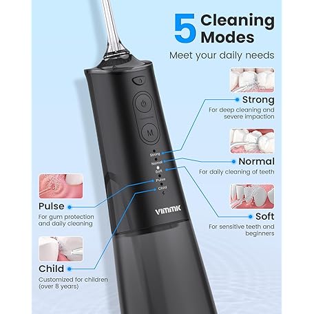 Sản phẩm VIMMK Water Flosser, Cordless Water Dental Flosser, 9 Jet Tips 5 Modes 300ML IPX7 Waterproof, Portable Rechargeable Oral Irrigator for Home Travel - Gums, Orthodontic, Braces Care - Black đang được bán với giá ưu đãi là $30.5091 tại nước Mỹ.