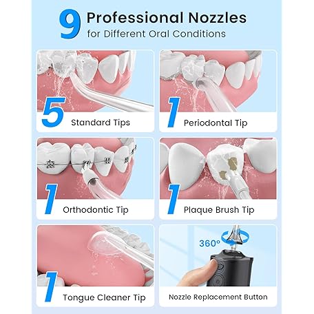 Thông tin sản phẩm VIMMK Water Flosser, Cordless Water Dental Flosser, 9 Jet Tips 5 Modes 300ML IPX7 Waterproof, Portable Rechargeable Oral Irrigator for Home Travel - Gums, Orthodontic, Braces Care - Black