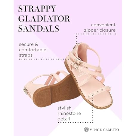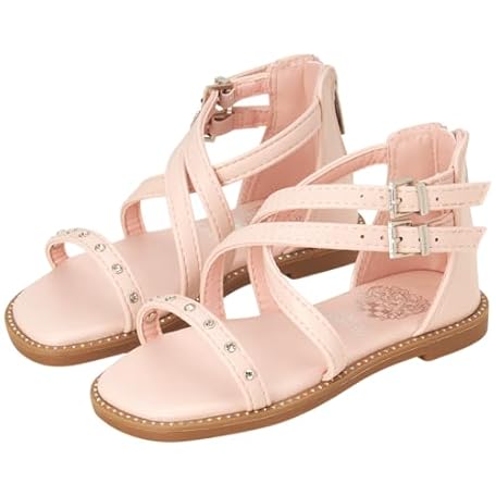 • Vince Camuto Girls' Sandals - Open Toe Summer Shoes Flat Strappy Gladiator Sandals with Back Zipper and Adjustable Buckles