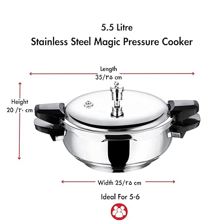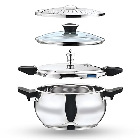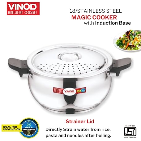 Sản phẩm Vinod Magic Stainless Steel Smart 3 in 1 Pressure Cooker 5.5 Litre | 5mm Thick Base | All in One Cooker with Strainer & Glass Lid | Induction and Gas Base | ISI certified, Silver đang được bán với giá ưu đãi là $76.2891 tại nước Mỹ.